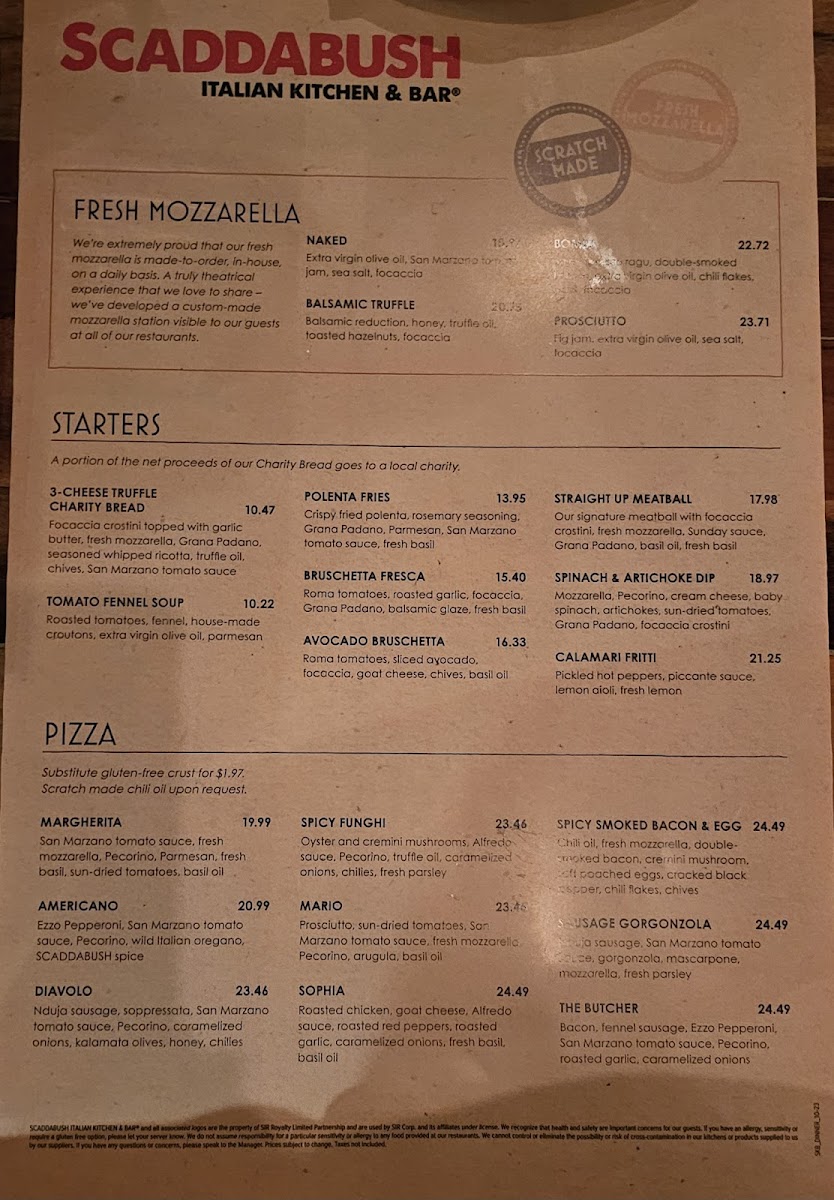 “ We had a great experience at Scaddabush! The atmosphere was warm and welcoming, perfect for a casual night out. We ordered pizza, pasta, and drinks — everything was delicious and freshly made. The pizza had a perfect crust, the pasta was rich and flavorful, and the drinks were well crafted. The service was friendly and attentive too. Definitely a place we’d love to come back to! ”